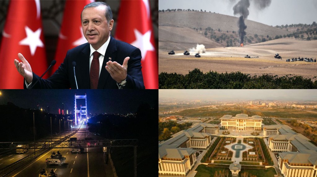 *Pictures left to right : President Erdogan, Turkish troops in Syria, Bosphore bridge occupation during the coup in july 2016, and the Presidential Palace.
