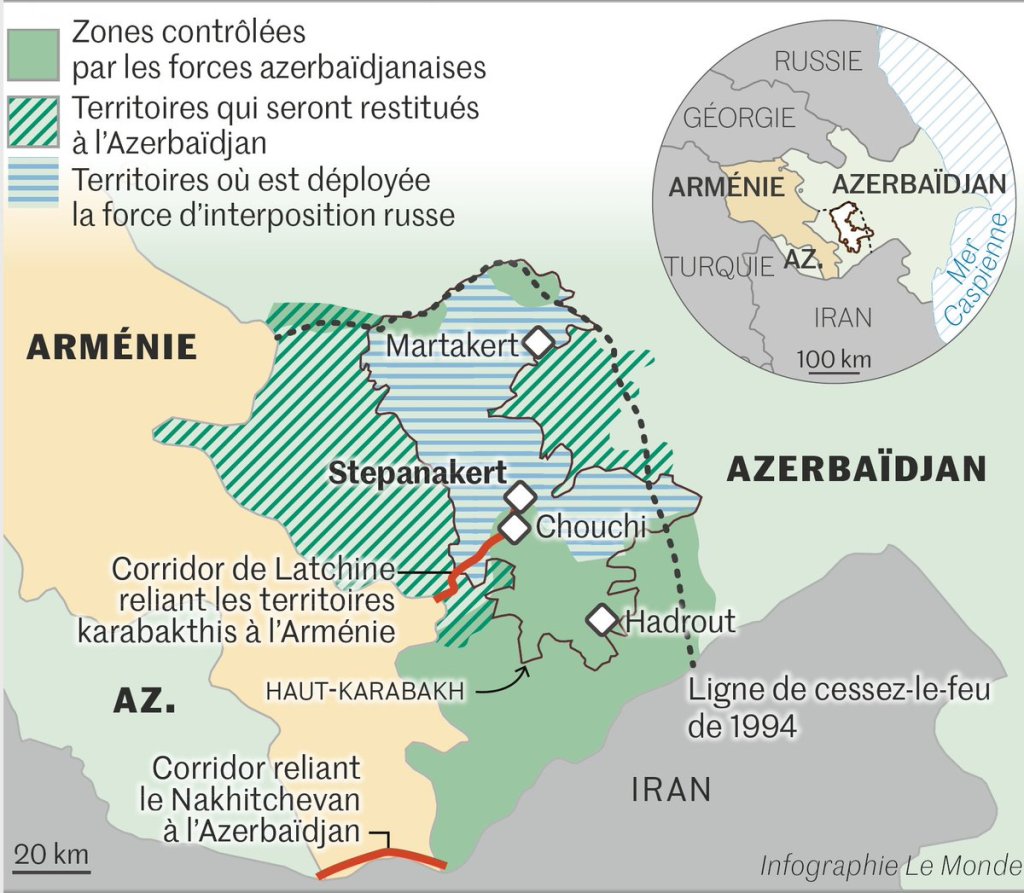 - Il s’agit pour Bakou d’en finir avec l’affront de la première guerre du Karabagh et de récupérer sa “terre”, tout en obtenant un corridor pour relier le Nakhitchevan à la nation mère – pour éviter de contourner l’Arménie en cas de nouveau pipeline ? -,