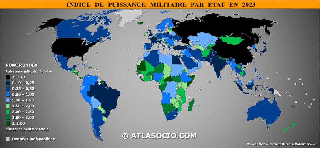 En 1948, la naissance de l’O.N.U. issue de l’entente entre deux Empires permit une paix chaude durant 43 ans. En 1991, une page se tourne avec l’effondrement d’un des deux compétiteurs. La transition vers le nouveau monde avait commencé, masqué par la toute puissance de Washington, dernier garant du système onusien. Le départ précipité d’Afghanistan(2021) et la guerre en Ukraine(2022) clôturent la fin de l’histoire et annoncent une nouvelle dynamique. Elle ne sera pas universelle, pas pour l’instant, elle sera multiple. Les nations ayant atteint le seuil industriel, technologique et démographique pour mener des guerres de grandes ampleurs sont bien plus nombreuses qu’en 1914 (voir carte ci-dessous), autant de conflits en perspective. Le nombre de superpuissance lui-aussi croît, passant de 2 – U.S.A. et U.R.S.S. – à 4 pour l’instant- U.S.A, Chine, Inde et Russie -. Ces Empires agglomèrent les États proches idéologiquement, tel les U.S.A. avec l’Occident. Le jeu international se complique avec l’érosion d’un système multilatéral où le gardien des règles fait son possible pour ne pas être pris de vitesse, par une volonté d’émancipation généralisée. Dans ce contexte hostile, l’appui américain à l’Ukraine revêt une importance cruciale(7); sa poursuite ou non indique jusqu’où iront les américains en cas de nouveaux conflits majeurs. Des concurrents stratégiques observent avec attention le déroulement des évènements, notamment Pékin. Actuellement, une phase transitoire où les codes habituels sont brouillés, débute avec une augmentation des tensions, chacun se croyant dans son droit fait valoir ses revendications (légitime ou non). Le conflit du Haut-Karabagh (2020) et le nettoyage ethnique de sa population arménienne (2023) n’a provoqué aucune réaction des démocraties. Il n’y eu aucune sanction; le contrat de fourniture de gaz signé entre l’Azerbaïdjan et l’U.E. en 2022, pour remplacer la Russie ne fut pas dénoncé. Ce précédant et ceux qui ont suivi démontrent dans les faits, une volonté de redéfinition des règles internationales. Le recours à la force n’est plus seulement l’apanage des U.S.A., et au vu de l’interdépendance des économies, des sanctions sont difficiles à mettre en œuvre. Les Empires de par leur structure, leurs manières d’exercer le pouvoir, leur réseau diplomatique (différents débouchés) et leur capacité d’autosuffisance auront la part belle dans ce nouveau monde.