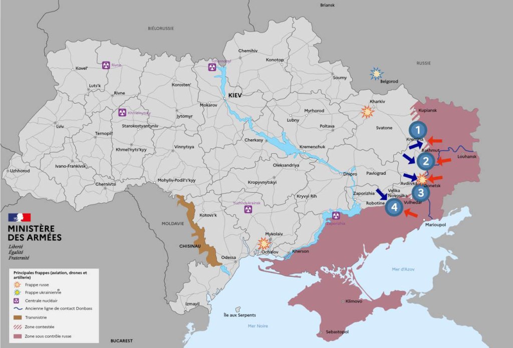 *Image à la une : De gauche à droite; détroit de Bab el Mandeb, réunion des BRICS 2023, troupes russes en manœuvre à la frontière ukrainienne en 2022 et porte avion Gerald Ford.